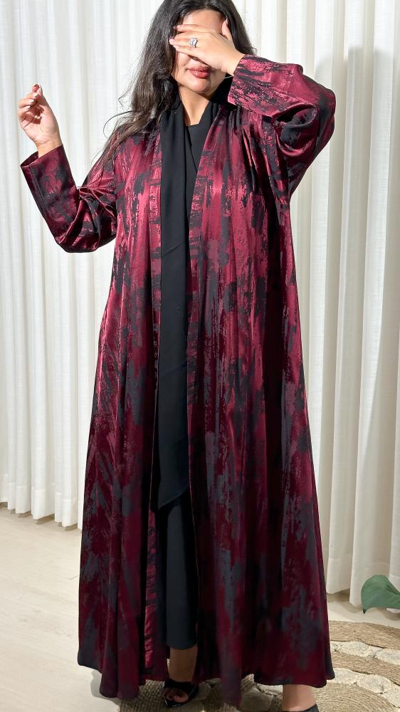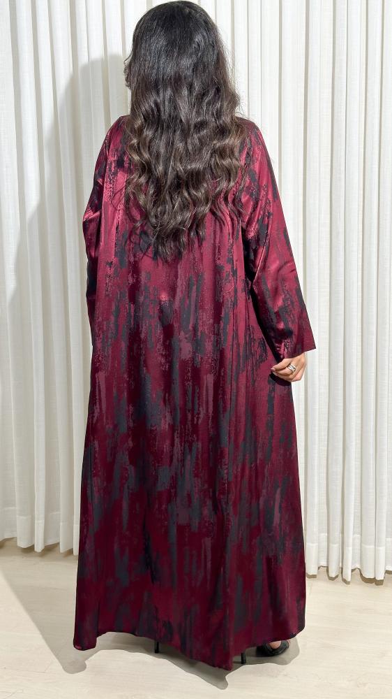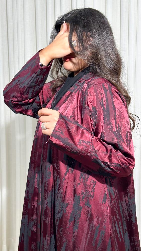 عباية جاكار تركي بلون برغندي متداخل مع الأسود