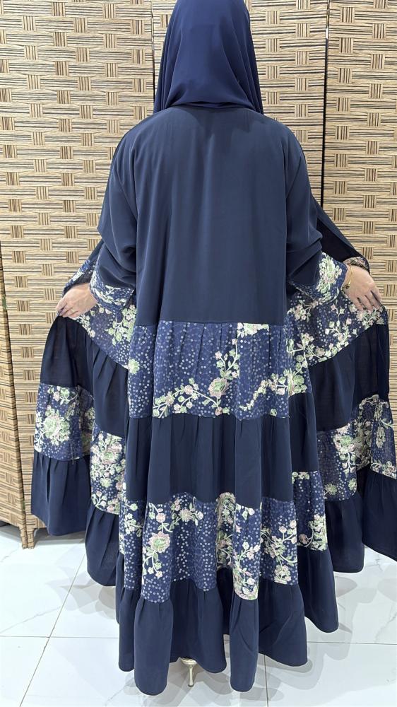 لونها الكحلي يعطي وقار، ومع التفاصيل الدقيقة يطلّعك بأناقة ناعمة وفخمة بنفس الوقت.