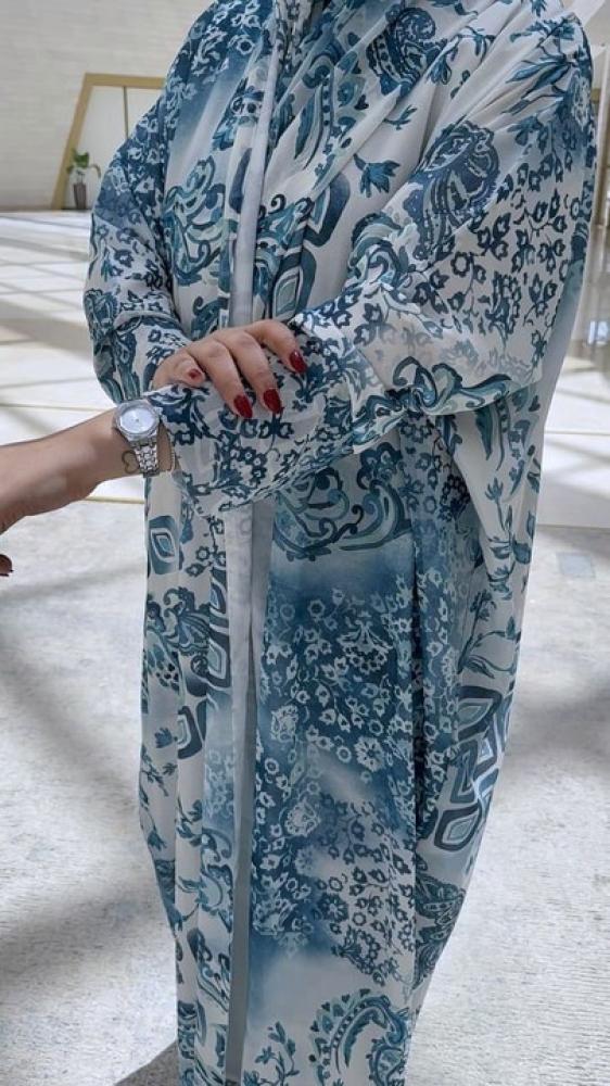 تألقي بإطلالة صيفية مفعمة بالأنوثة والرقي مع أحدث صيحات عبايات الشيفون لهذا الموسم. تتميز هذه العباية بقصتها الكلوش الواسعة التي تمنحك حرية الحركة ومظهرًا انسيابيًا يخطف الأنظار، مع لمسة فنية من تشجيرة ناعمة تزينها وتضفي عليها طابعًا فريدًا.