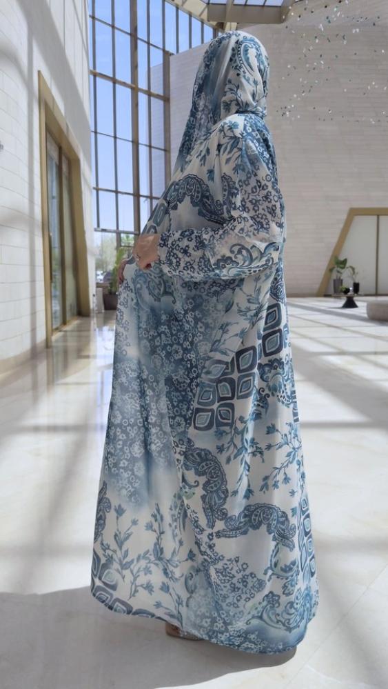 أحدث صيحات الموضة: عباية شيفون كلوش بتشجيرة جذابة مع طرحة متناسقة